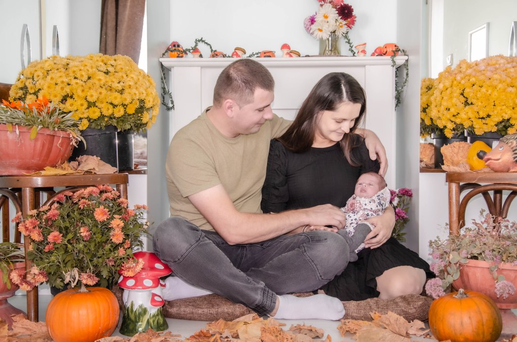 Good, now, beside that fireplace, what else would scream fall and cozy, baby appropriate? Wooden chairs? Leaves? Chrysanthemums? Pumpkins? Mushrooms?Hedgehogs?