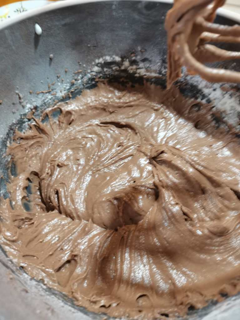 - Add a tablespoon of cacao and 2 of flour out of the full quantity. Add them by sieving.