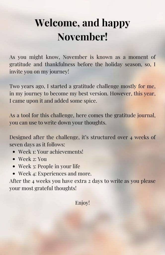 Created with simple, yet elegant looks, and well structured to be simple to use, with the pain points of this challenge, the Gratitude journal is exactly what you need in this journey.